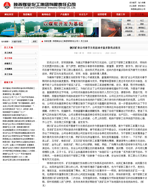 ★ 2月21日“陜煤化集團網(wǎng)站”刊發(fā)《銅川礦業(yè)公司春節(jié)文化活動豐富多彩亮點紛呈》