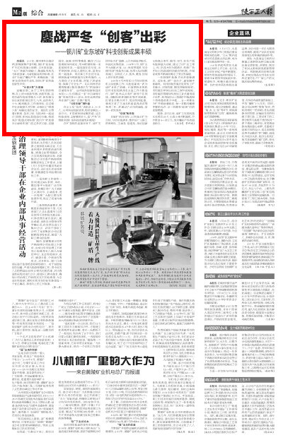 陜西工人報(bào) 2015年3月31日 煤業(yè)二版 本報(bào)訊2015年,煤市寒冬日趨冷冽,原煤銷售嚴(yán)重不暢,銅川礦業(yè)東坡礦堅(jiān)定科技強(qiáng)企戰(zhàn)略,以科技創(chuàng)新、“五小”革新為突破口,推動(dòng)技術(shù)攻關(guān)與科技創(chuàng)新,大幅度提高獎(jiǎng)勵(lì)標(biāo)準(zhǔn),在全礦興起了鏖戰(zhàn)嚴(yán)冬、積極創(chuàng)新、“創(chuàng)客”出彩的時(shí)代風(fēng)尚,加快了礦區(qū)科技創(chuàng)新的步伐。“小改小革”大效益