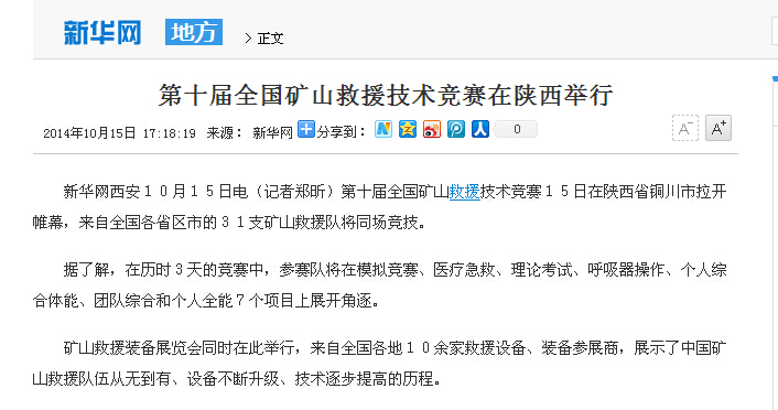 新華網(wǎng)西安10月15日電(記者鄭昕)第十屆全國礦山救援技術(shù)競賽15日在陜西省銅川市拉開帷幕,來自全國各省區(qū)市的31支礦山救援隊(duì)將同場(chǎng)競技。