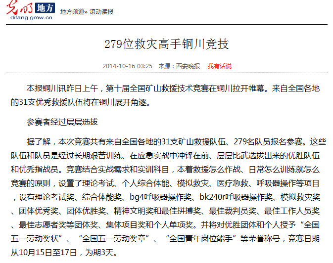 下一條:新華網(wǎng):第十屆全國礦山救援技術(shù)競賽在陜西舉行