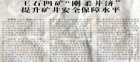 ★ 6月19日“陜西日報”刊發(fā)《王石凹礦“剛柔并濟”提升礦井安全保障水平》(作者:喜順)