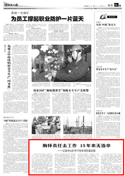 陜西工人報:胸懷責(zé)任去工作15年來無違章——記金華山礦井下絞車司機(jī)雷定湘