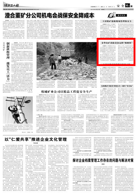 陜西工人報(bào):金華山礦消除設(shè)備運(yùn)轉(zhuǎn)“腸梗阻”