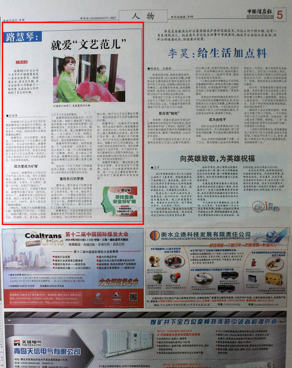 路慧琴笑著說:“最近電視上常常談中國夢,其實(shí)我也有個中國夢,我這是一個讓家庭幸福和諧的夢,是一個讓企業(yè)蓬勃發(fā)展的夢,是一個讓所有礦工家庭平平安安的夢。
