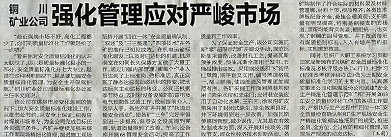 ★ 5月7日“陜西工人報”刊發(fā)《銅川礦業(yè)公司強化管理應對嚴峻市場》