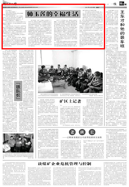 師玉蓮現(xiàn)在覺(jué)得特知足,特滿足,覺(jué)得自己的生活真是太幸福了。她真誠(chéng)地對(duì)筆者說(shuō):“俺不在乎有錢(qián)沒(méi)錢(qián),不在乎吃的好壞,不在乎穿金戴銀,開(kāi)心就好。而最讓俺開(kāi)心的就是作為礦嫂能為礦工兄弟做點(diǎn)事情,能帶領(lǐng)姐妹們贏得贊賞和尊重,實(shí)現(xiàn)我們平凡的人生價(jià)值。哈哈,給你說(shuō)吧,俺現(xiàn)在最幸福的就是站在領(lǐng)獎(jiǎng)臺(tái)上,接受領(lǐng)導(dǎo)給俺們頒獎(jiǎng),俺覺(jué)得自己是最有用的礦山女人了?!保ㄍ趵颍?/p>