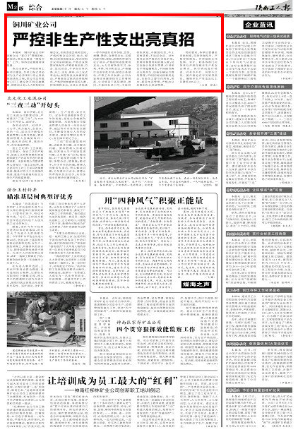 本報(bào)訊銅川礦業(yè)公司牢固樹(shù)立過(guò)“緊日子”管理思想,深層次、常態(tài)化推進(jìn)“增收節(jié)支”工作,保持企業(yè)健康持續(xù)發(fā)展。