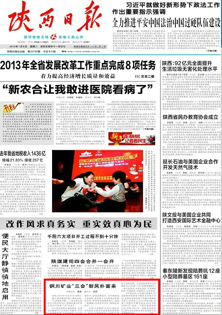 陜西日?qǐng)?bào) 2013年元月8日 頭版