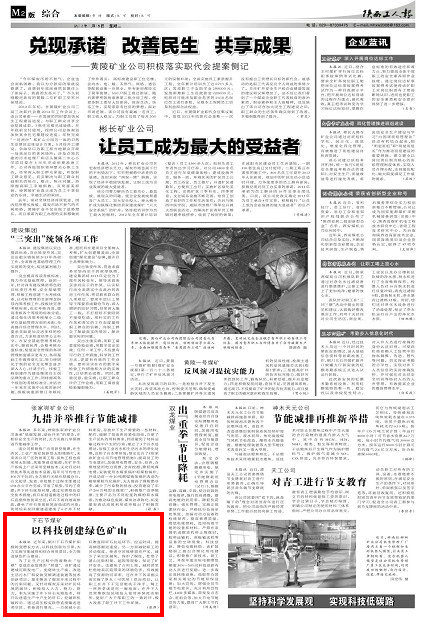 近年來,銅川下石節(jié)煤礦積極轉變增長方式,以科技創(chuàng)新為引領,大力實施節(jié)能減排和綜合利用項目,全力推進綠色礦山建設。