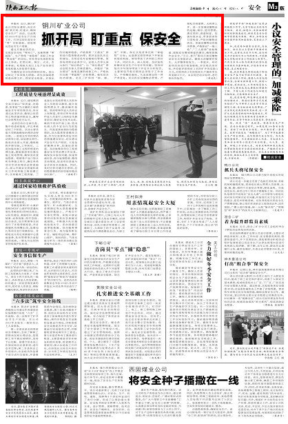 本報(bào)訊近日,銅川礦業(yè)公司發(fā)出通知,決定開展“抓開局、盯重點(diǎn)、確保安全生產(chǎn)”活動(dòng),以此抓好2013年安全生產(chǎn)開局工作,打好實(shí)現(xiàn)年度安全“零”目標(biāo)基礎(chǔ),創(chuàng)造更長(zhǎng)的安全生產(chǎn)周期。
