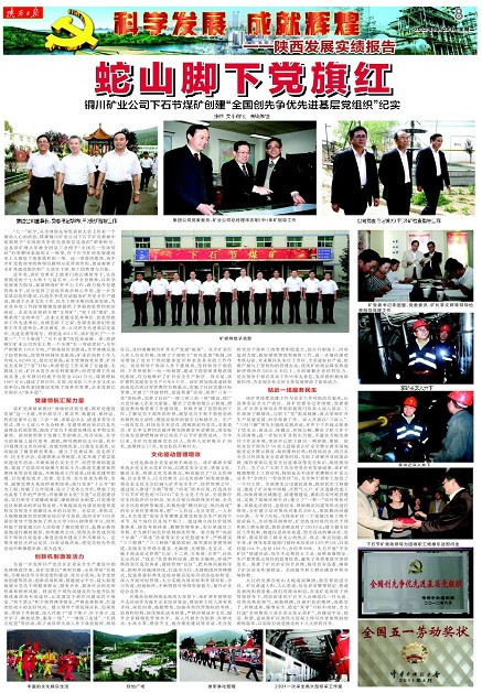 “七一”前夕,從全國創(chuàng)先爭(zhēng)優(yōu)表彰大會(huì)上傳來一個(gè)激動(dòng)人心的消息,陜煤銅川礦業(yè)公司下石節(jié)礦黨委被中組部授予“全國創(chuàng)先爭(zhēng)優(yōu)先進(jìn)基層黨組織”榮譽(yù)稱號(hào)。這是該礦繼去年被全國總工會(huì)授予“全國五一勞動(dòng)獎(jiǎng)狀”后榮膺國家級(jí)的又一殊榮,在下石節(jié)礦的發(fā)展建設(shè)史上又描繪了濃墨重彩的一筆。這一榮譽(yù)的取得,離不開礦黨政領(lǐng)導(dǎo)的典型引路和示范帶動(dòng)作用,更是凝聚了全礦各級(jí)黨組織和廣大黨員干部、職工的智慧與力量。