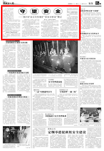 “多一份守望,就多一份安全。多一份安全,更要加一份守望?!?011年11月,東坡礦實(shí)施每晚7點(diǎn)30分安全生產(chǎn)分析會(huì)制度。實(shí)踐9個(gè)多月,該礦安全、穩(wěn)定向“雙零”奮進(jìn),實(shí)現(xiàn)了2012年時(shí)間、任務(wù)雙過(guò)半,開(kāi)創(chuàng)了安全好、質(zhì)量好、穩(wěn)定好、生產(chǎn)好、效益好、企業(yè)文化好的“六好”局面。尤其6月份以來(lái),未發(fā)生一起輕傷以上事故。