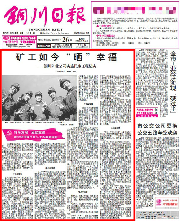 銅川日報(bào) 2012年7月26日 頭版頭條