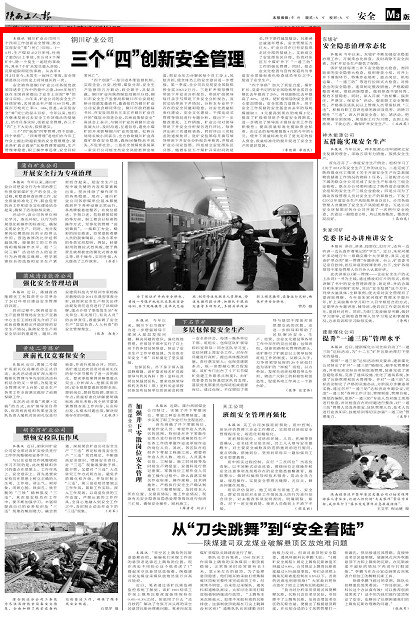 安全始終是銅川礦業(yè)公司各級黨政領導諸多工作中的重中之重,2006年他們就在全國首家提出了安全上實現(xiàn)“零”的奮斗目標。六年來,礦業(yè)公司的安全生產(chǎn)持續(xù)好轉,尤其是去年產(chǎn)煤1160萬噸,原煤百萬噸死亡率 0.086,但是,未實現(xiàn)安全“零”死亡的奮斗目標。今年以來,他們在繼承發(fā)揚過去安全工作好做法的基礎上,結合自身實際,創(chuàng)新安全管理,在三個“四”上下大功夫,狠抓落實。