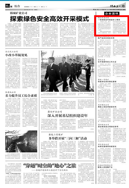 本報(bào)訊(李德強(qiáng) 郝龍)近日,銅川礦業(yè)公司《焦坪礦區(qū)巨厚礫巖條件下大面積活動(dòng)規(guī)律及致災(zāi)性研究》科研項(xiàng)目獲得陜西省2011年度科學(xué)技術(shù)進(jìn)步二等獎(jiǎng)。