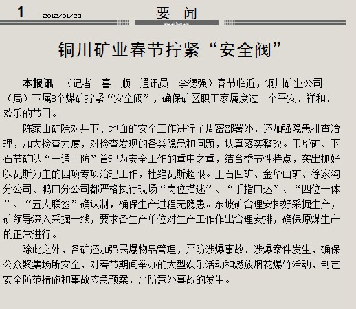 上一條:陜西日報(bào):王石凹礦出臺保勤措施保春節(jié)電煤供應(yīng) 下一條:陜西日報(bào):銅川礦業(yè)公司800余萬元確保貧困黨員和群眾過春節(jié)