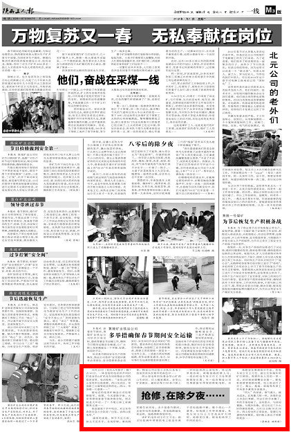 接電話的是該礦物業(yè)公司經(jīng)理薛振軍,他想,今天是除夕夜,大家等著觀看春節(jié)聯(lián)歡晚會(huì)呢,明天就是大年初一了!不能讓職工家屬摸黑過(guò)夜……
