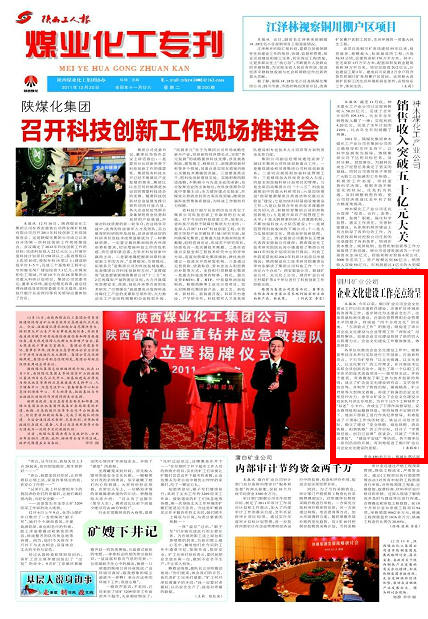 各單位在推動(dòng)企業(yè)文化建設(shè)工作中,能夠緊密結(jié)合本單位實(shí)際進(jìn)行工作創(chuàng)新,打造新的亮點(diǎn)。下石節(jié)礦堅(jiān)持“以文化鑄魂、以文化育人、以文化聚力”的工作理念,在開展技術(shù)比武和全員創(chuàng)新活動(dòng)中,誕生了第一個(gè)以職工名字命名的技術(shù)改造項(xiàng)目——留軍排水法,并給予重獎(jiǎng),有效激發(fā)了職工參與技術(shù)創(chuàng)新的熱情;成立了礦企業(yè)文化建設(shè)研究會(huì)、文學(xué)創(chuàng)作協(xié)會(huì)等,并制作了輝煌歷程、煤海精英、礦山脊梁等大型圖文看板,形成了較強(qiáng)的企業(yè)文化視覺沖擊力。金華山礦設(shè)立了企業(yè)文化建設(shè)示范區(qū)隊(duì)月評比專項(xiàng)獎(jiǎng),為井下117個(gè)工種制作了“雙述”小卡片,并成立了干部作風(fēng)督導(dǎo)組、安全督導(dǎo)組和運(yùn)輸督導(dǎo)組,堅(jiān)持每周不定期對井下、地面干部職工進(jìn)行作風(fēng)紀(jì)律督導(dǎo),有效促進(jìn)了干部職工作風(fēng)的轉(zhuǎn)變。鐵運(yùn)公司結(jié)合實(shí)際,確立了建設(shè)“安全鐵路、綠色鐵路、清潔鐵路、和諧鐵路”的工作目標(biāo),召開了“學(xué)黃陵經(jīng)驗(yàn),創(chuàng)自己品牌”座談會(huì),開展了“單機(jī)無事故”、“建設(shè)平安線”等活動(dòng)。各下屬單位一系列活動(dòng)的開展,有利地促進(jìn)了銅川礦業(yè)公司企業(yè)文化建設(shè)的進(jìn)程。