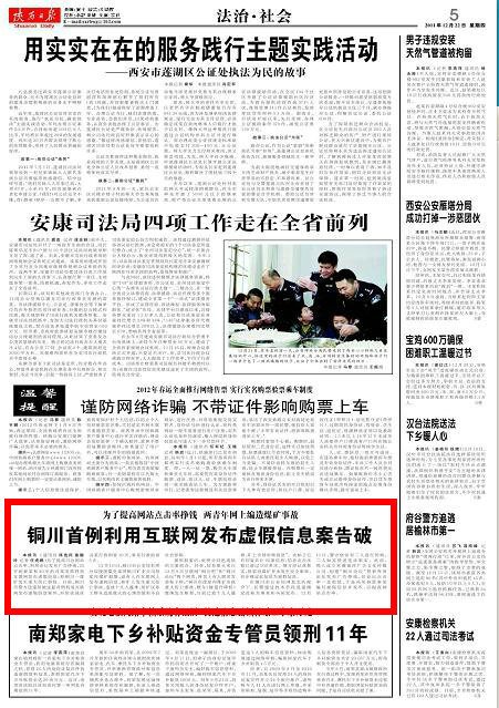 接到報(bào)案后,虹橋分局迅速組織立案偵辦。經(jīng)查,信息源頭來自12月9日互聯(lián)網(wǎng)“銅川吧”和“銅川論壇”兩個(gè)網(wǎng)頁,網(wǎng)頁上有人匿名發(fā)表帖子稱:“銅川市徐家溝煤礦出現(xiàn)重大傷亡事故,猴車(隧道升降機(jī))纜繩發(fā)生斷裂,目前已致十幾人遇難,礦上全部封鎖消息”。此帖子已有回復(fù)共計(jì)32條信息,信息點(diǎn)擊次數(shù)已超過500多次。警方經(jīng)認(rèn)真核實(shí),徐家溝煤礦并未發(fā)生安全事故,初步確定此信息為虛假信息。
