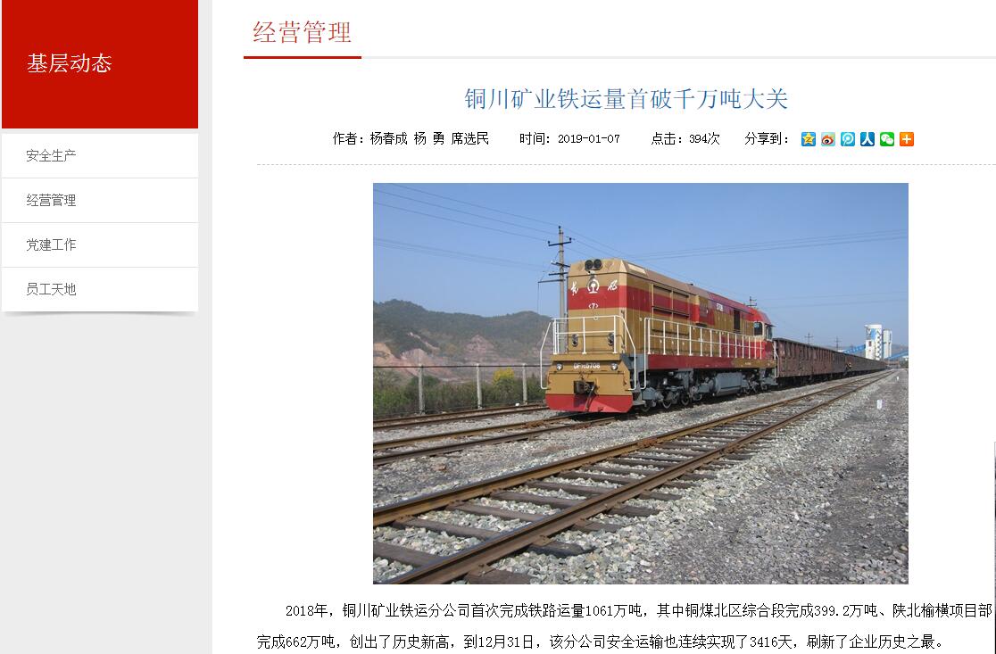 銅川礦業(yè)鐵運(yùn)量首破千萬噸大關(guān)