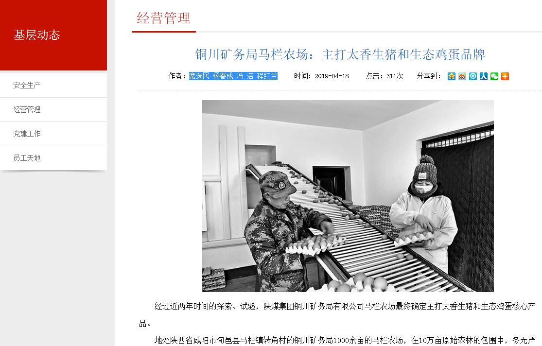 銅川礦務(wù)局馬欄農(nóng)場:主打太香生豬和生態(tài)雞蛋品牌