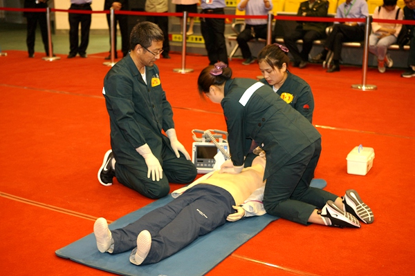 24日當(dāng)天的競賽共設(shè)置了救護(hù)綜合體能競賽、醫(yī)療綜合體能競賽、救護(hù)醫(yī)療急救競賽、救護(hù)呼吸器操作比賽、消防模擬救災(zāi)比賽、醫(yī)療理論考試、救護(hù)理論考試等項(xiàng)目。