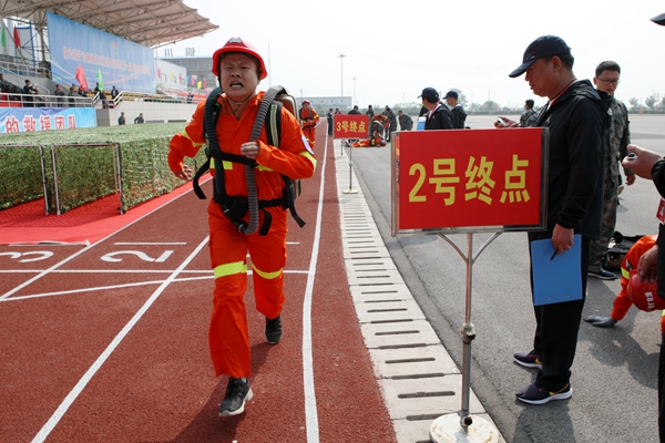 上午8時整,綜合體能賽拉開戰(zhàn)幕。參賽隊員秩序井然、精神抖擻,6人一組,在完成高空爬繩后,迅速背起近二十公斤的呼吸器進(jìn)行千米奔跑,并要在途中穿越長15米的獨(dú)木橋,爬過20米的低巷,到達(dá)終點(diǎn)完成綜合體能競技的各項(xiàng)內(nèi)容。競賽中,各參賽隊的隊員以有力的攀繩動作,越橋的矯健身影,鉆巷的快捷熟練,奔跑的健步如飛,彰顯著救護(hù)隊員的奮斗精神和戰(zhàn)斗風(fēng)貌。