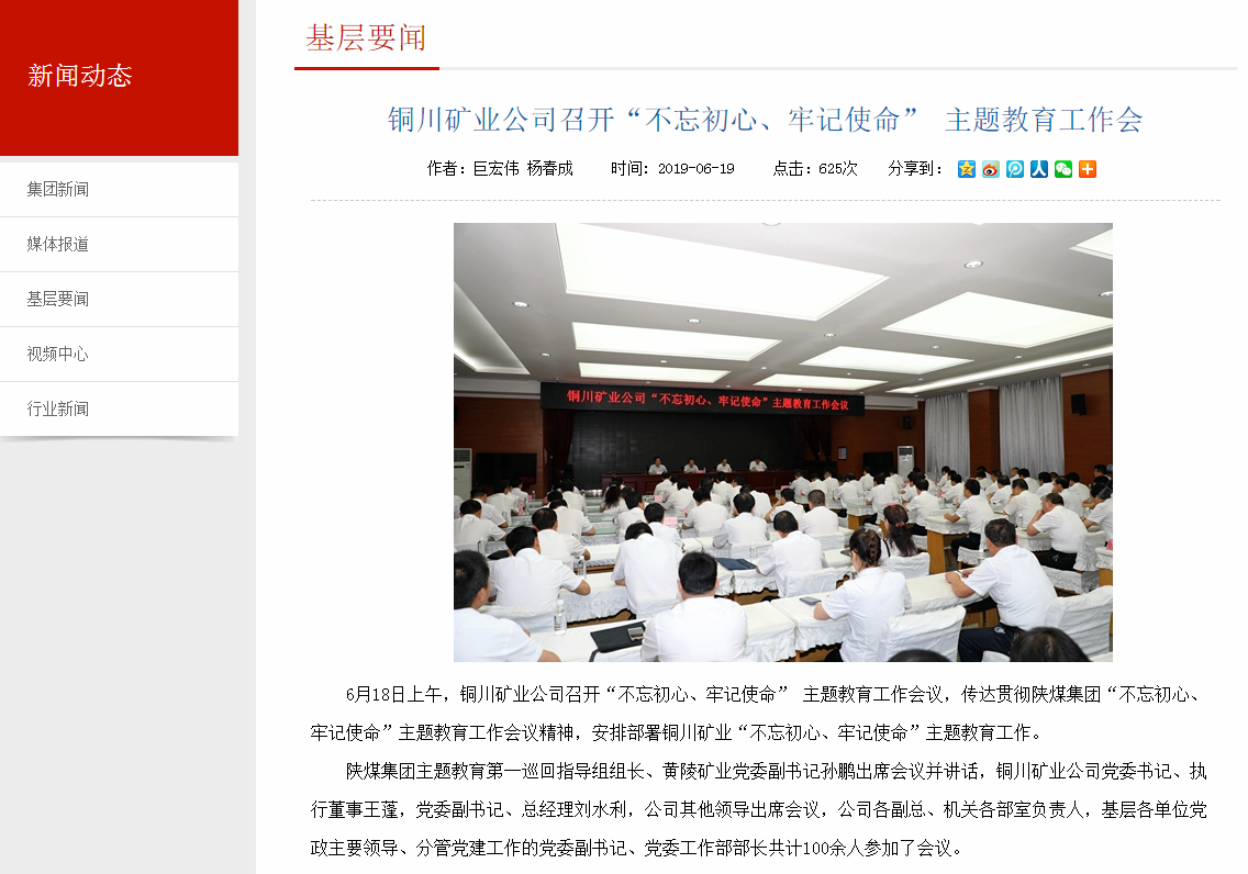 6月18日上午,銅川礦業(yè)公司召開“不忘初心、牢記使命” 主題教育工作會議,傳達(dá)貫徹陜煤集團(tuán)“不忘初心、牢記使命”主題教育工作會議精神,安排部署銅川礦業(yè)“不忘初心、牢記使命”主題教育工作。