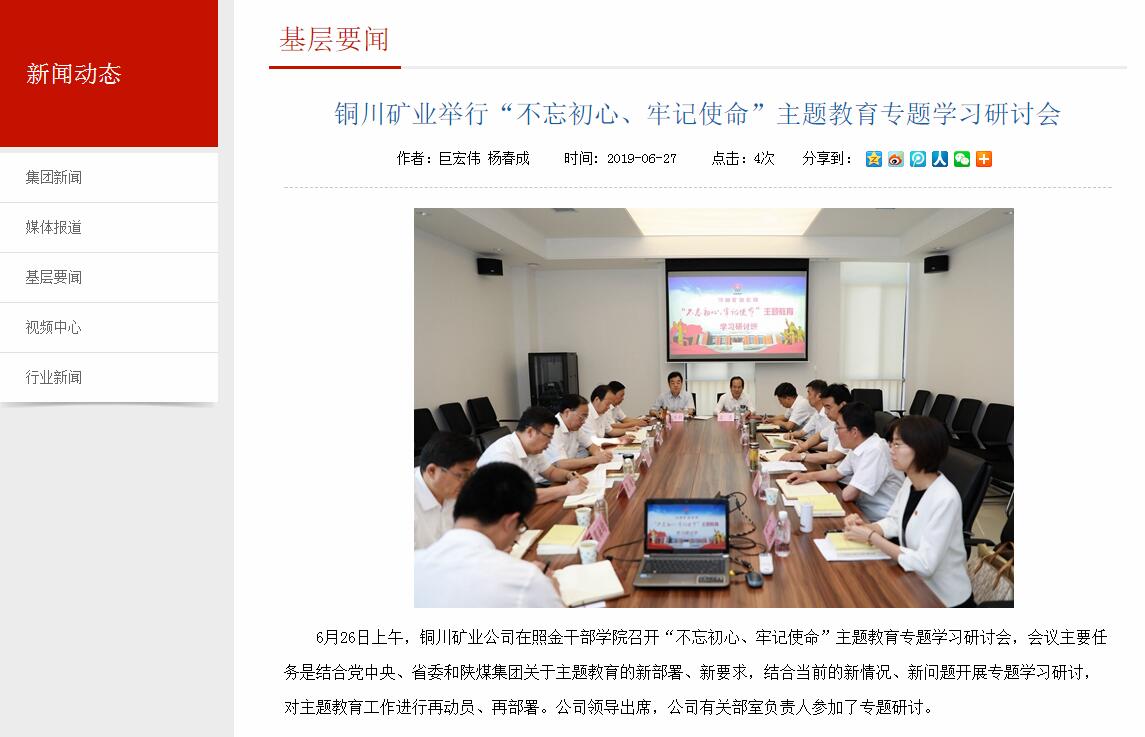 集團網(wǎng):銅川礦業(yè)舉行“不忘初心、牢記使命”主題教育專題學習研討會