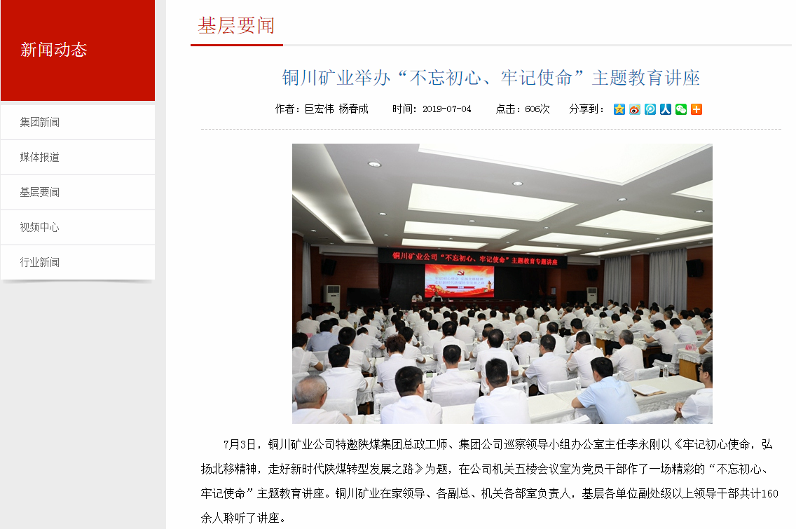 銅川礦業(yè)舉辦“不忘初心、牢記使命”主題教育講座