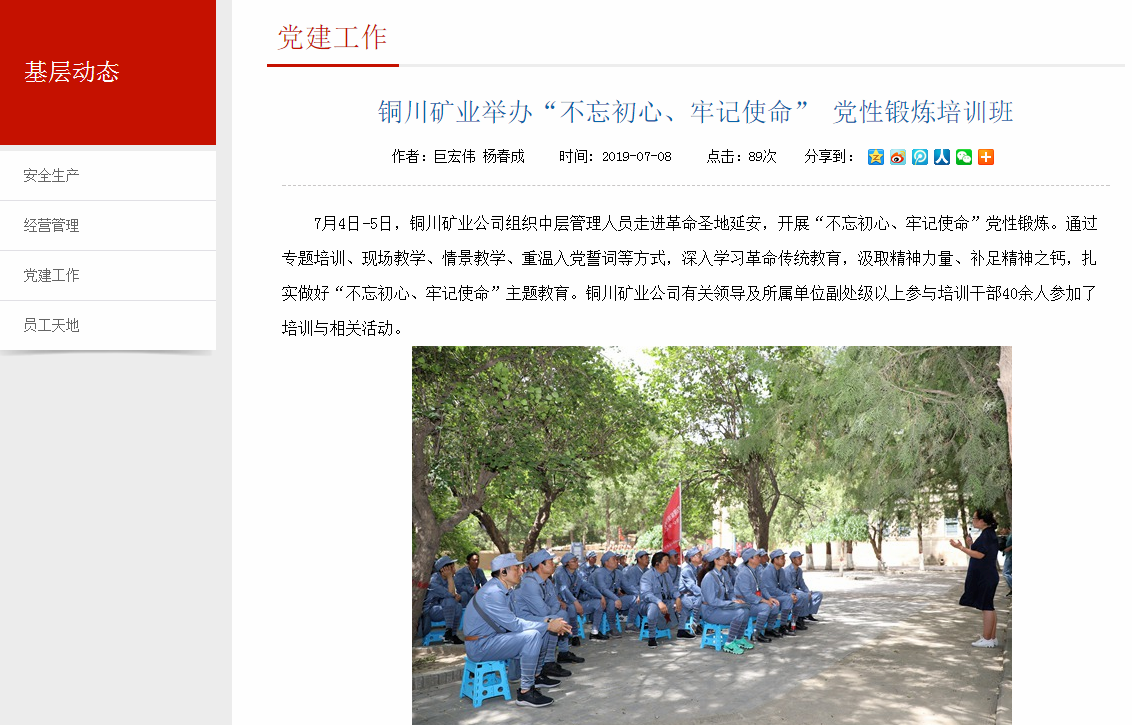 銅川礦業(yè)舉辦“不忘初心、牢記使命” 黨性鍛煉培訓(xùn)班