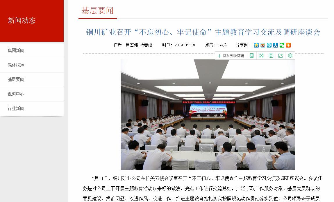 集團(tuán)網(wǎng):銅川礦業(yè)召開“不忘初心、牢記使命”主題教育學(xué)習(xí)交流及調(diào)研座談會