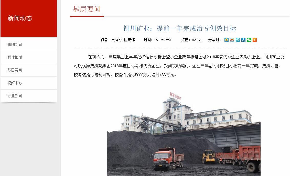 在前不久,陜煤集團上半年經(jīng)濟運行分析會暨小企業(yè)改革推進會及2018年度優(yōu)秀企業(yè)表彰大會上,銅川礦業(yè)公司以優(yōu)異成績獲集團2018年度目標考核優(yōu)秀企業(yè),受到表彰獎勵。企業(yè)三年治虧創(chuàng)效目標提前一年完成,成績可喜,較考核指標增利可觀,較奮斗指標5000萬元增利433萬元。
