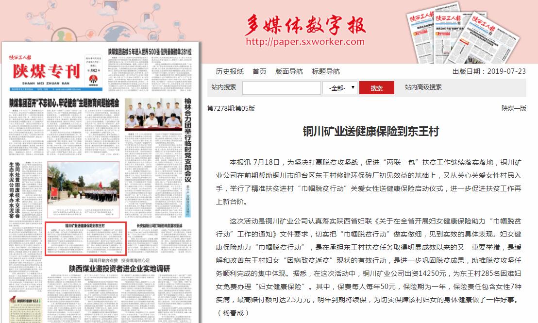 這次活動是銅川礦業(yè)公司認(rèn)真落實陜西省婦聯(lián)《關(guān)于在全省開展婦女健康保險助力“巾幗脫貧行動”工作的通知》文件要求,切實把“巾幗脫貧行動”做實做細(xì),見到實效的具體表現(xiàn)。婦女健康保險助力“巾幗脫貧行動”,是在承擔(dān)東王村扶貧任務(wù)取得明顯成效以來的又一重要舉措,是緩解和改善東王村婦女“因病致貧返貧”現(xiàn)狀的有效行動,是進(jìn)一步鞏固脫貧成果,助推脫貧攻堅任務(wù)順利完成的集中體現(xiàn)。據(jù)悉,在這次活動中,銅川礦業(yè)公司出資14250元,為東王村285名困難婦女免費辦理“婦女健康保險”。其中,保費每人每年50元,保險期為一年,保險責(zé)任包含女性7種疾病,最高賠付額可達(dá)2.5萬元,明年到期將續(xù)保,為切實保障該村婦女的身體健康做了一件好事。(楊春成)