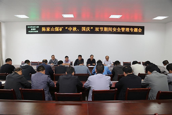 在陳家山煤礦在調(diào)度信息樓一樓會議室,正在召開“中秋”、“國慶”期間安全管理專題會,強化安全生產(chǎn)意識,嚴(yán)格標(biāo)準(zhǔn)化作業(yè),嚴(yán)格安全隱患排查,確保雙節(jié)期間礦井安全生產(chǎn)穩(wěn)步進行。