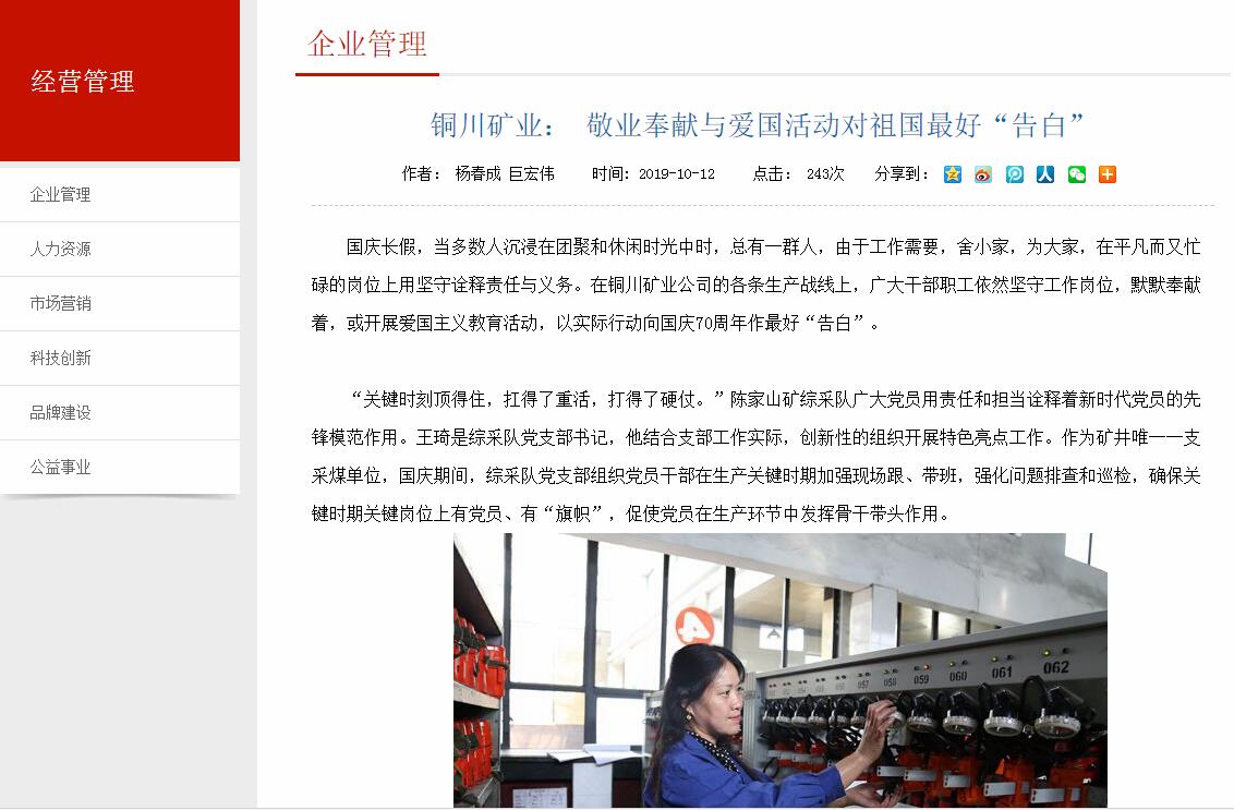 國(guó)慶長(zhǎng)假,當(dāng)多數(shù)人沉浸在團(tuán)聚和休閑時(shí)光中時(shí),總有一群人,由于工作需要,舍小家,為大家,在平凡而又忙碌的崗位上用堅(jiān)守詮釋責(zé)任與義務(wù)。在銅川礦業(yè)公司的各條生產(chǎn)戰(zhàn)線上,廣大干部職工依然堅(jiān)守工作崗位,默默奉獻(xiàn)著,或開展愛國(guó)主義教育活動(dòng),以實(shí)際行動(dòng)向國(guó)慶70周年作最好“告白”。