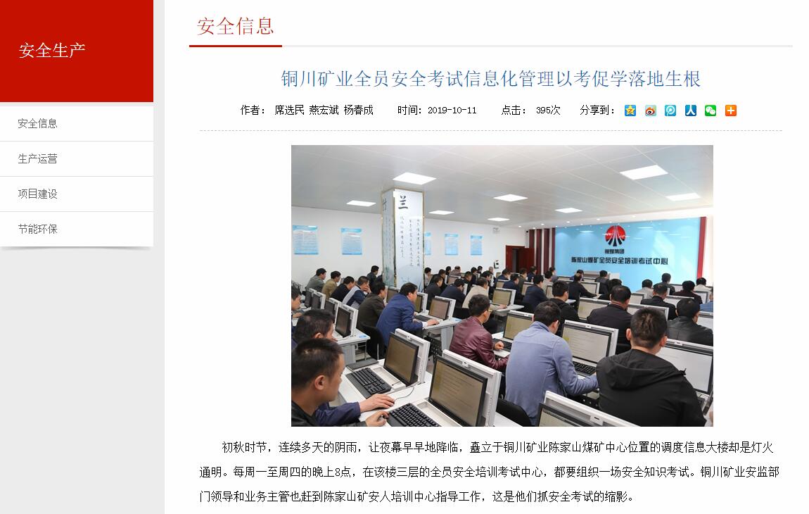 在八月份和九月份,由陜煤股份公司組織的兩場‘五職礦長’考試中,陳家山礦參加考試的人員取得了很不錯的成績,這其中離不開他們平日在全員安全培訓(xùn)考試系統(tǒng)上的強(qiáng)化練習(xí)和一次次的在線考試。