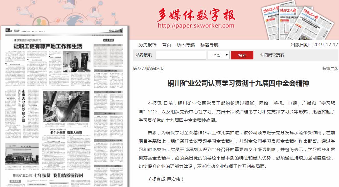 銅川礦業(yè)公司認(rèn)真學(xué)習(xí)貫徹十九屆四中全會(huì)精神