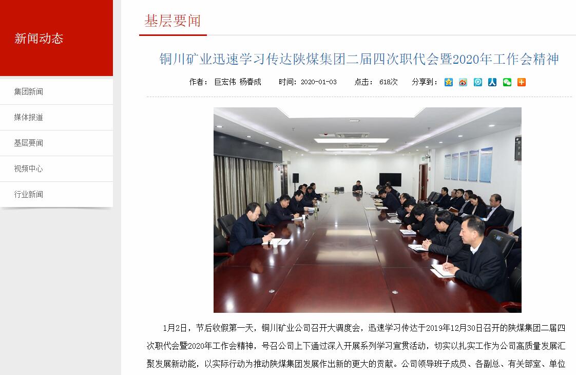 銅川礦業(yè)迅速學(xué)習(xí)傳達(dá)陜煤集團(tuán)二屆四次職代會暨2020年工作會精神