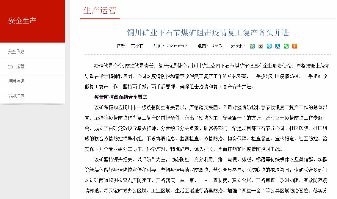 疫情就是命令,防控就是責任,復產就是使命。銅川礦業(yè)公司下石節(jié)煤礦牢記國有企業(yè)職責使命,嚴格按照上級領導重要指示精神和集團、公司對疫情防控和春節(jié)收假復工復產工作的總體部署,一手抓好礦區(qū)疫情防控,一手抓好收假復工復產工作,堅持兩手抓,兩手都要硬,確保阻擊疫情和復工復產齊頭并進。