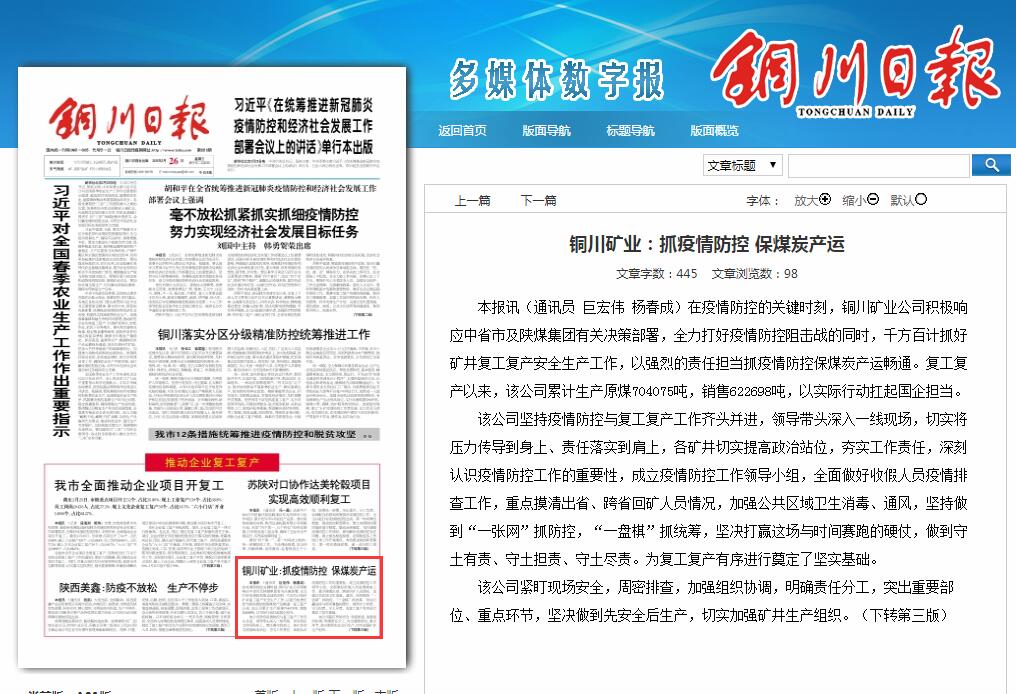銅川礦業(yè):抓疫情防控 保煤炭產(chǎn)運(yùn)