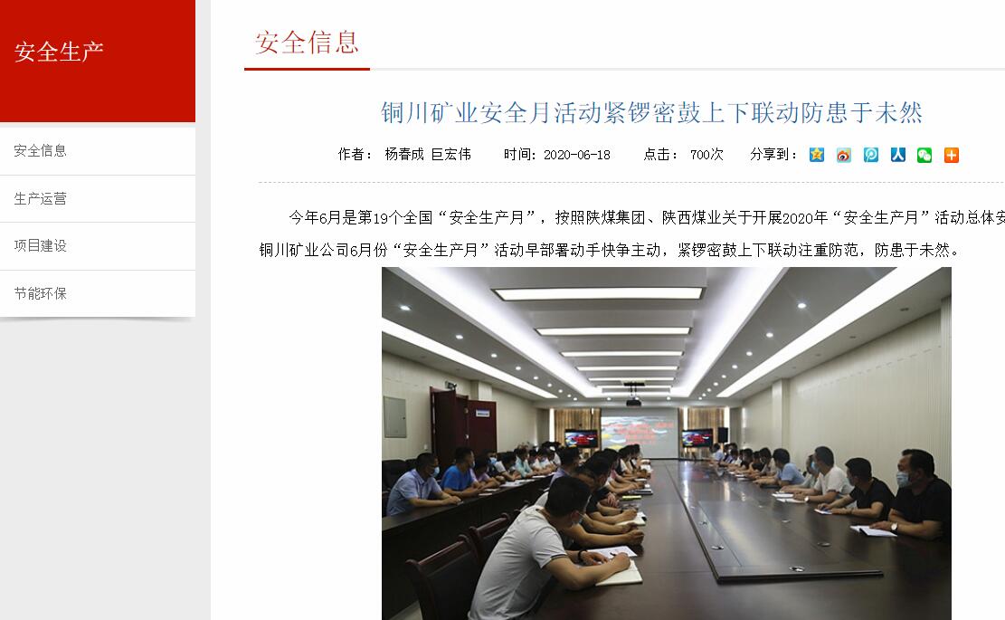 今年6月是第19個全國“安全生產(chǎn)月”,按照陜煤集團、陜西煤業(yè)關(guān)于開展2020年“安全生產(chǎn)月”活動總體安排,銅川礦業(yè)公司6月份“安全生產(chǎn)月”活動早部署動手快爭主動,緊鑼密鼓上下聯(lián)動注重防范,防患于未然。