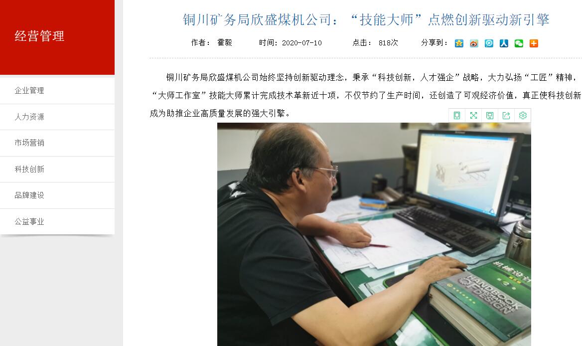 銅川礦務(wù)局欣盛煤機公司:“技能大師”點燃創(chuàng)新驅(qū)動新引擎