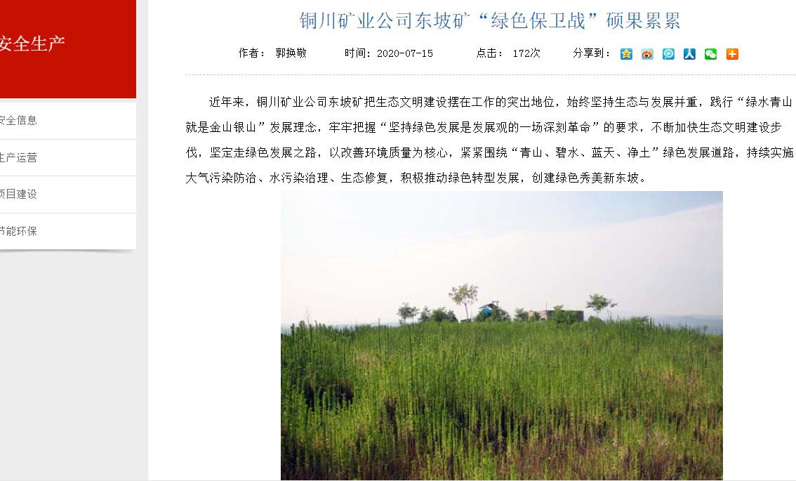 銅川礦業(yè)公司東坡礦“綠色保衛(wèi)戰(zhàn)”碩果累累