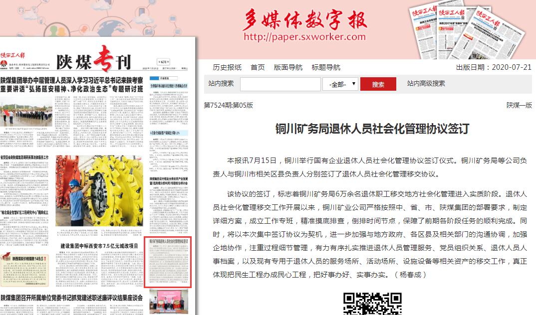 該協(xié)議的簽訂,標(biāo)志著銅川礦務(wù)局6萬余名退休職工移交地方社會(huì)化管理進(jìn)入實(shí)質(zhì)階段。退休人員社會(huì)化管理移交工作開展以來,銅川礦業(yè)公司嚴(yán)格按照中、省、市、陜煤集團(tuán)的部署要求,制定詳細(xì)方案,成立工作專班,精準(zhǔn)摸底排查,倒排時(shí)間節(jié)點(diǎn),保障了前期各階段任務(wù)的順利完成。同時(shí),將以本次集中簽訂協(xié)議為契機(jī),進(jìn)一步加強(qiáng)與地方政府、各區(qū)縣及相關(guān)部門的溝通協(xié)調(diào),加強(qiáng)企地協(xié)作,注重過程細(xì)節(jié)管理,有力有序扎實(shí)推進(jìn)退休人員管理服務(wù)、黨員組織關(guān)系、退休人員人事檔案,以及現(xiàn)有專用于退休人員的服務(wù)場所、活動(dòng)場所、設(shè)施設(shè)備等相關(guān)資產(chǎn)的移交工作,真正體現(xiàn)把民生工程辦成民心工程,把好事辦好、實(shí)事辦實(shí)。(楊春成)