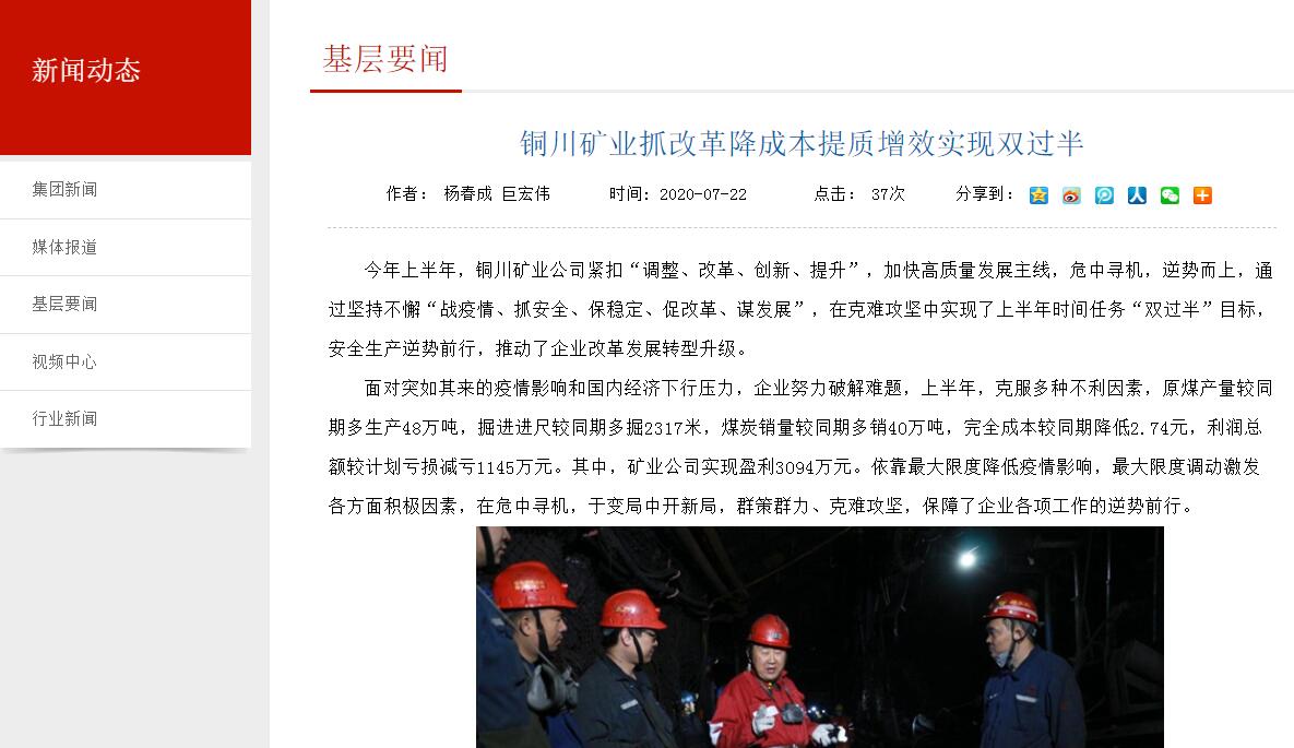 今年上半年,銅川礦業(yè)公司緊扣“調整、規(guī)范、創(chuàng)新、提升”,加快高質量發(fā)展主線,危中尋機,逆勢而上,通過堅持不懈“戰(zhàn)疫情、抓安全、保穩(wěn)定、促改革、謀發(fā)展”,在克難攻堅中實現了上半年時間任務“雙過半”目標,安全生產逆勢前行,推動了企業(yè)改革發(fā)展轉型升級。