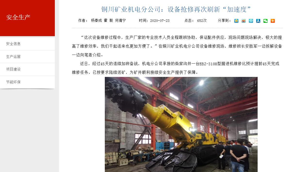 銅川礦業(yè)機(jī)電分公司:設(shè)備搶修再次刷新“加速度”