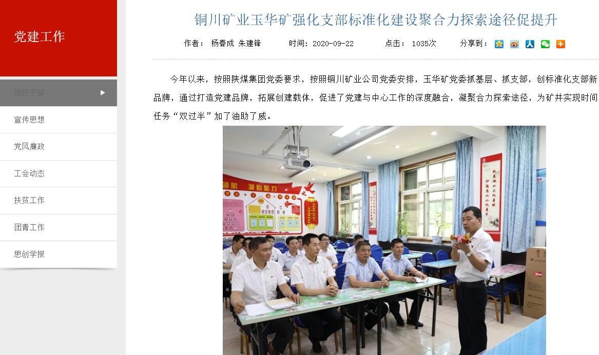 銅川礦業(yè)玉華礦強化支部標(biāo)準(zhǔn)化建設(shè)聚合力探索途徑促提升