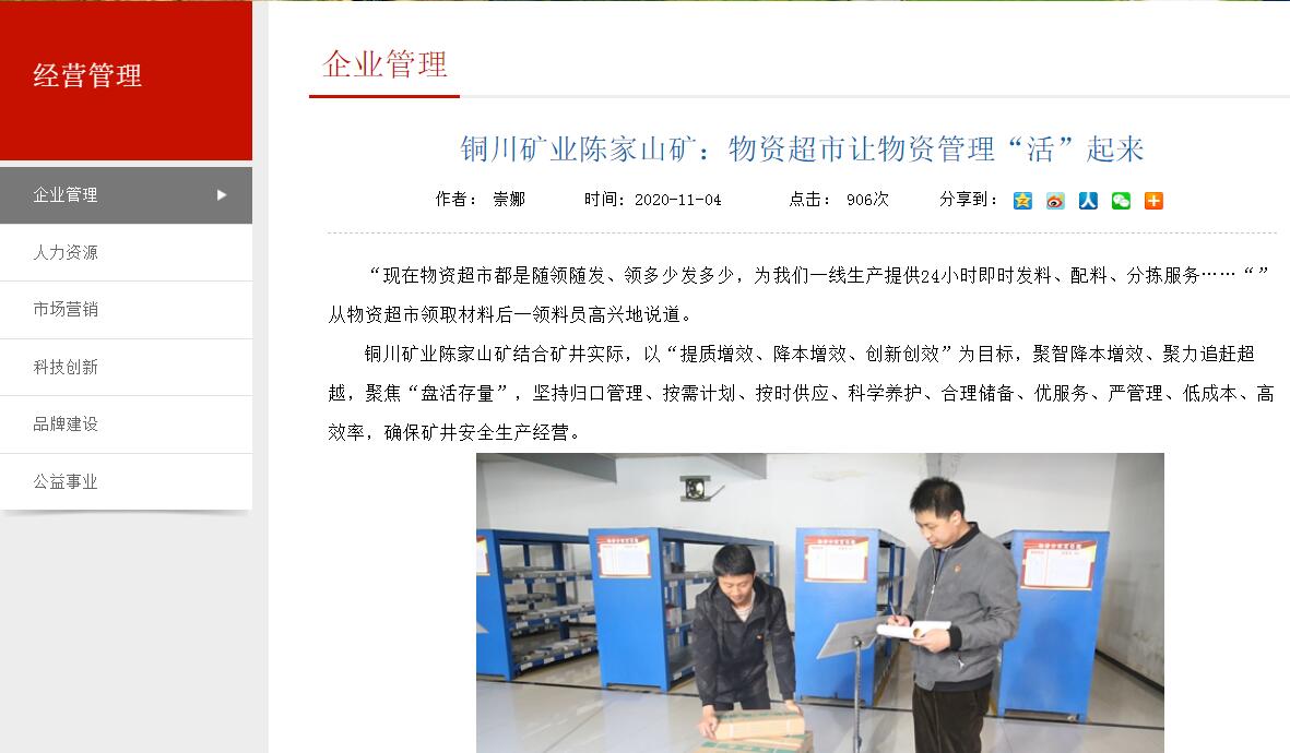 銅川礦業(yè)陳家山礦:物資超市讓物資管理“活”起來
