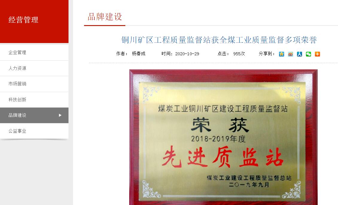 銅川礦區(qū)工程質(zhì)量監(jiān)督站獲全煤工業(yè)質(zhì)量監(jiān)督多項(xiàng)榮譽(yù)